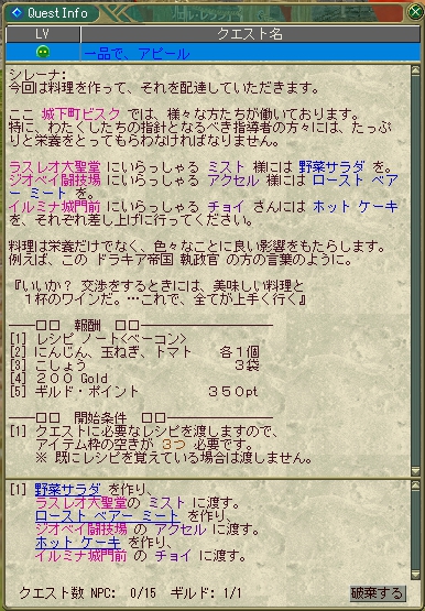 ■ ランク2クエスト 『一品で、アピール』 を選択
