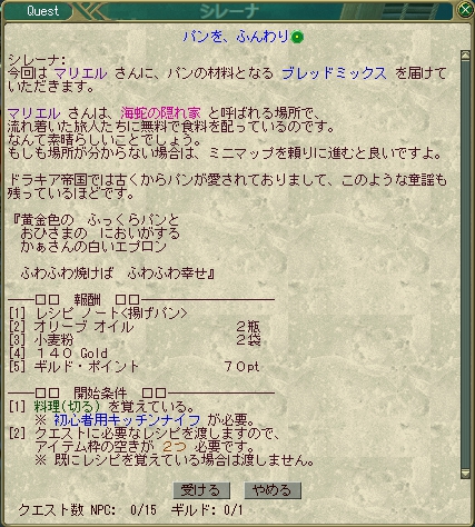 ■ ランク1クエスト 『パンを、ふんわり』 を選択