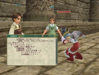 ねこねこバッグのレシピとねこねこバッグ(左)をゲット。