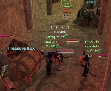 なんかの儀式みたいに、3匹のサル(?)でちまちまと宝箱を攻撃。