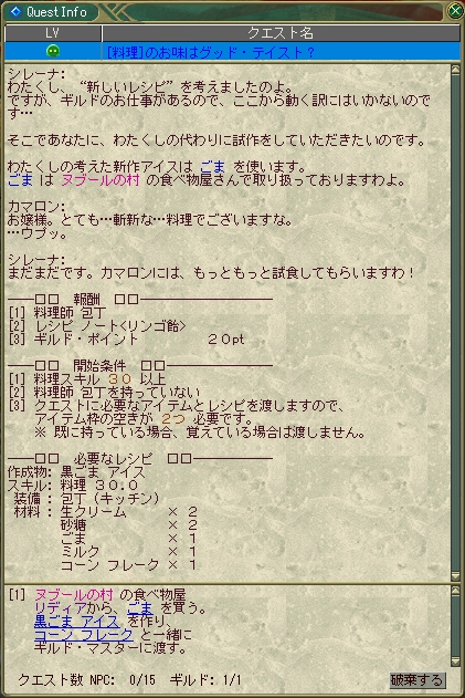 ■ シップ包丁入手クエスト [料理]のお味はグッドテイスト?