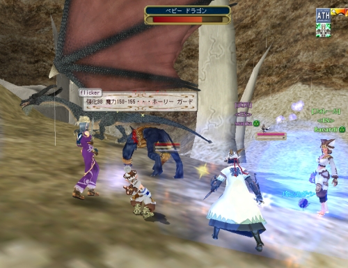 今日のachaはルートダンスとかあまり使わず、ほとんど殴ってました...。タイミング良くルートダンスできるとほんと楽になるのですけどね。でもあまりタイミング良くルートダンスを決め続けていると、気がついたらドラゴンに囲まれて一人...なんてことにも。結果として死んでしまったりという前回の反省。殴るか踊るか。今回は他にダンサーさんが2人いたので、お任せです。